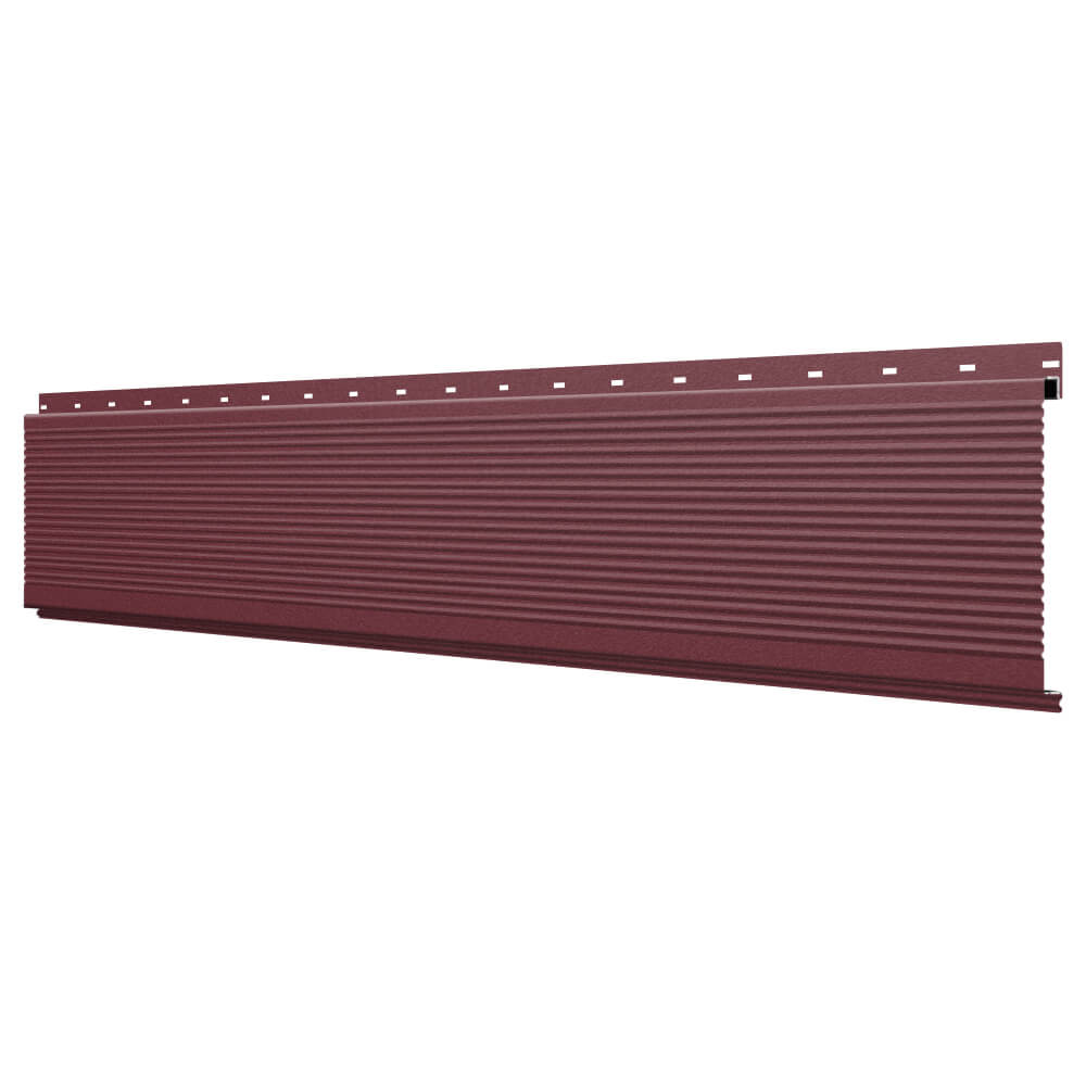 Линеарная потолочно-стеновая панель РИФЛЕНАЯ усиленная цвет RAL3005 Красное Вино Стальной Бархат применяется в качестве софитов для подшивы крыши, наружной и внутренней отделки потолков, стен, фронтонов фасада дома в Сыктывкаре.