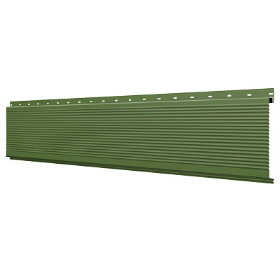 Линеарная потолочно-стеновая панель РИФЛЕНАЯ усиленная цвет RAL6002 Зеленый Лист применяется в качестве софитов для подшивы крыши, наружной и внутренней отделки потолков, стен, фронтонов фасада дома в Сыктывкаре.