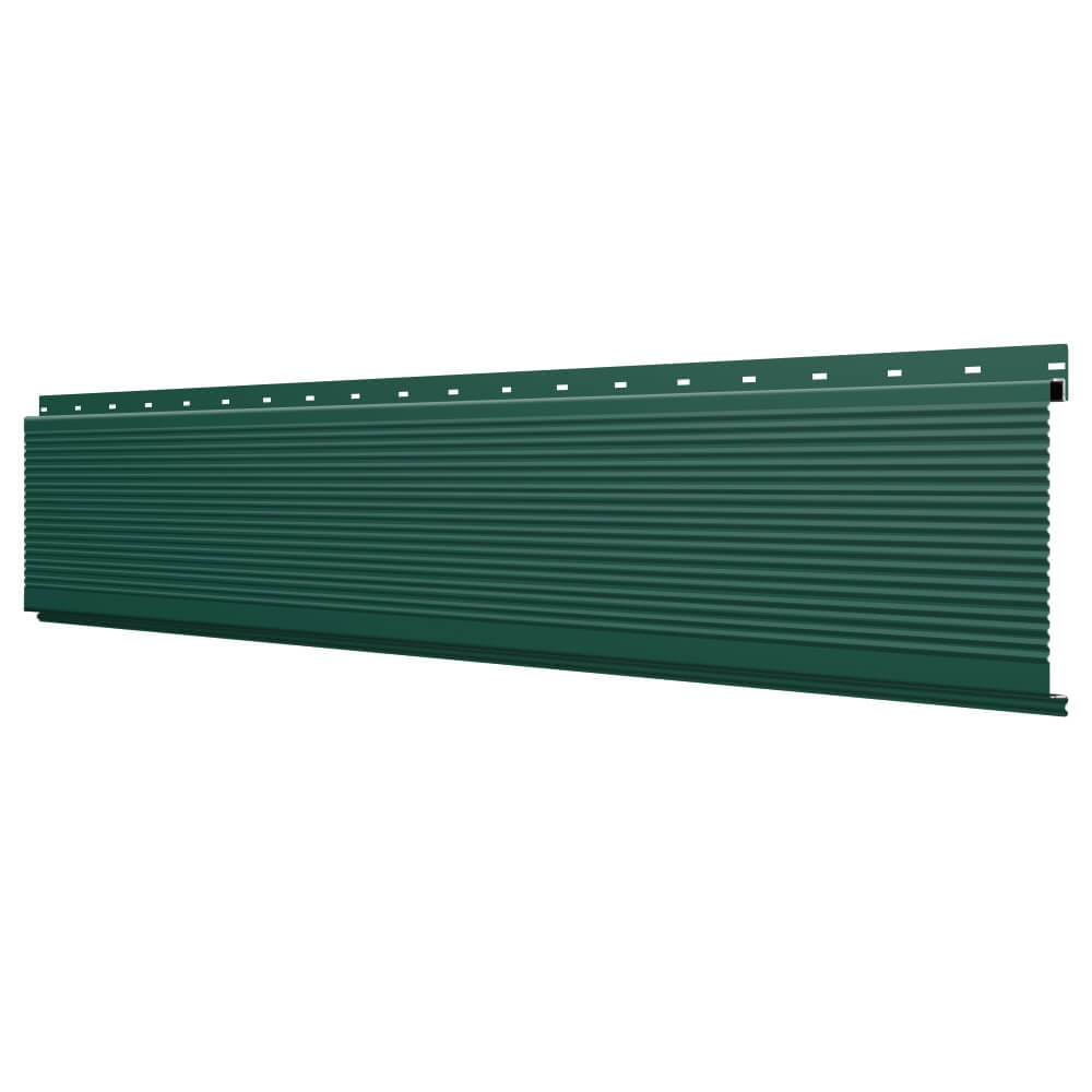 Линеарная потолочно-стеновая панель РИФЛЕНАЯ усиленная цвет RAL6005 Зеленый Мох применяется в качестве софитов для подшивы крыши, наружной и внутренней отделки потолков, стен, фронтонов фасада дома в Сыктывкаре.