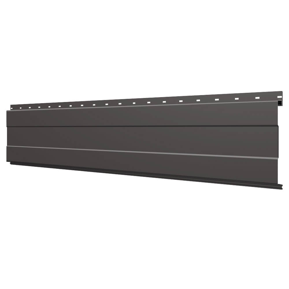 Линеарная потолочно-стеновая панель с ПОЛОСОЙ усиленная цвет RAL8019 Темный Шоколад применяется в качестве софитов для подшивы крыши, наружной и внутренней отделки потолков, стен, фронтонов фасада дома в Сыктывкаре.