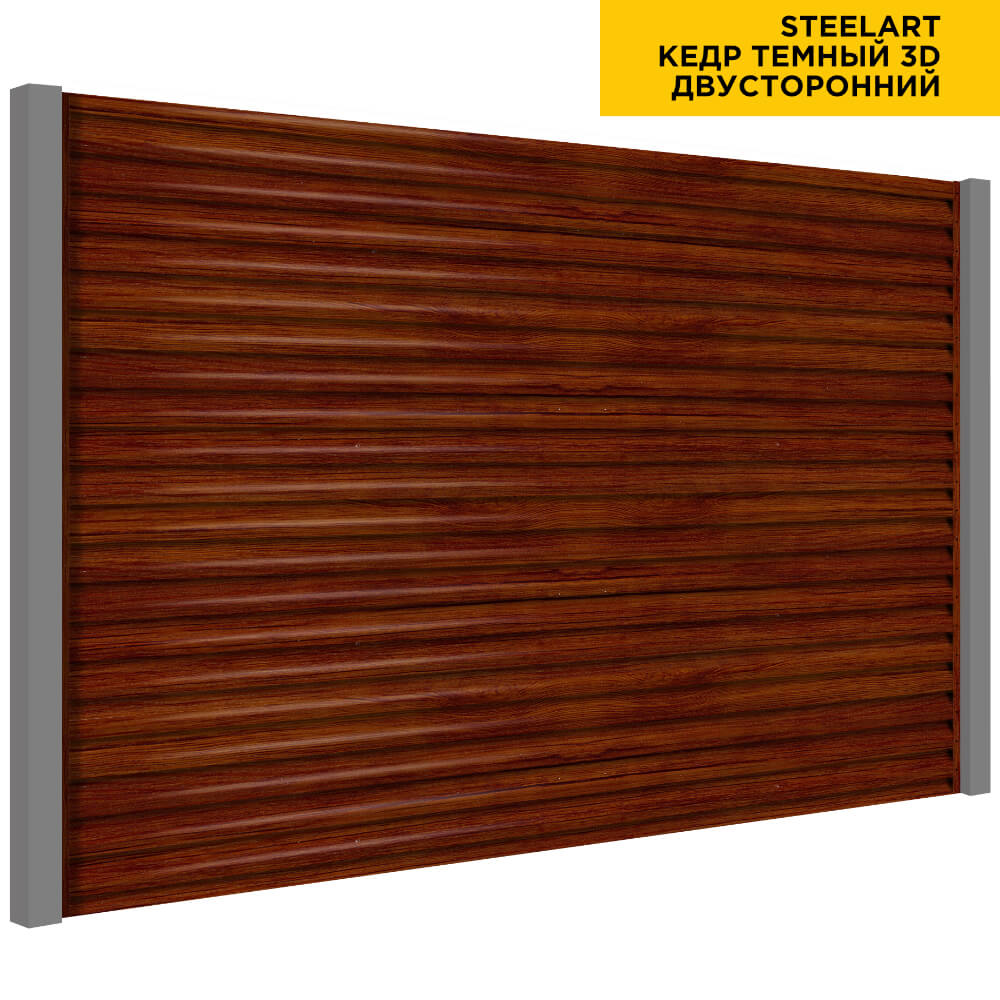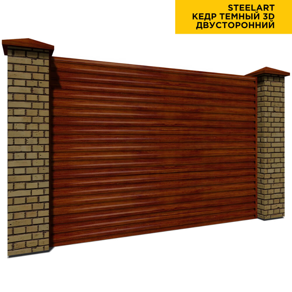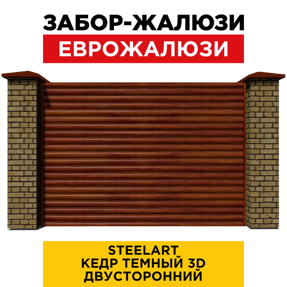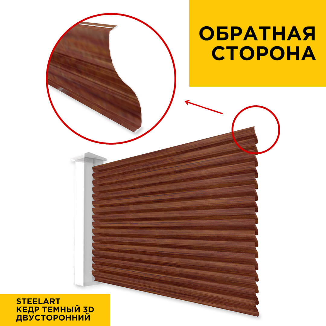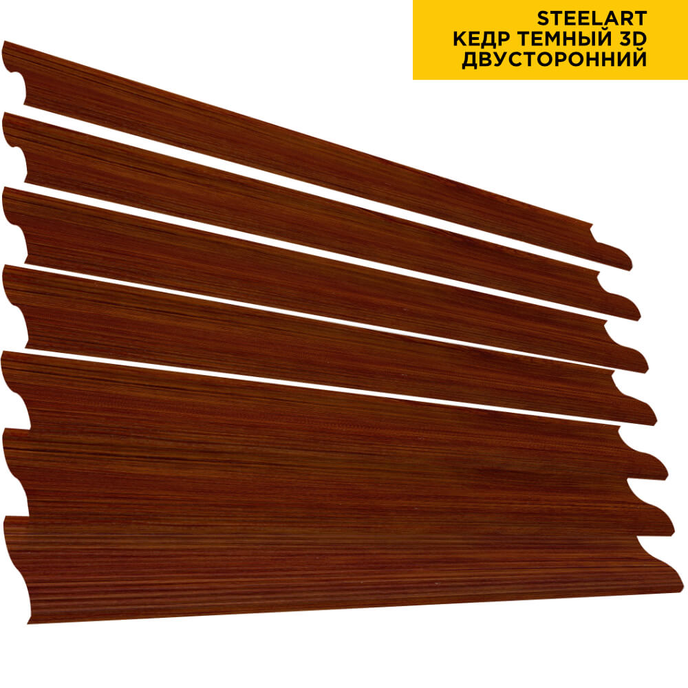 Ламель Еврожалюзи металлическая S-образная, цвет под дерево Кедр Темный 3D SteelArt Россия двухстороннее покрытие, длина любая кратно 1см под заказ - для забора-жалюзи, беседки, перголы в Сыктывкаре