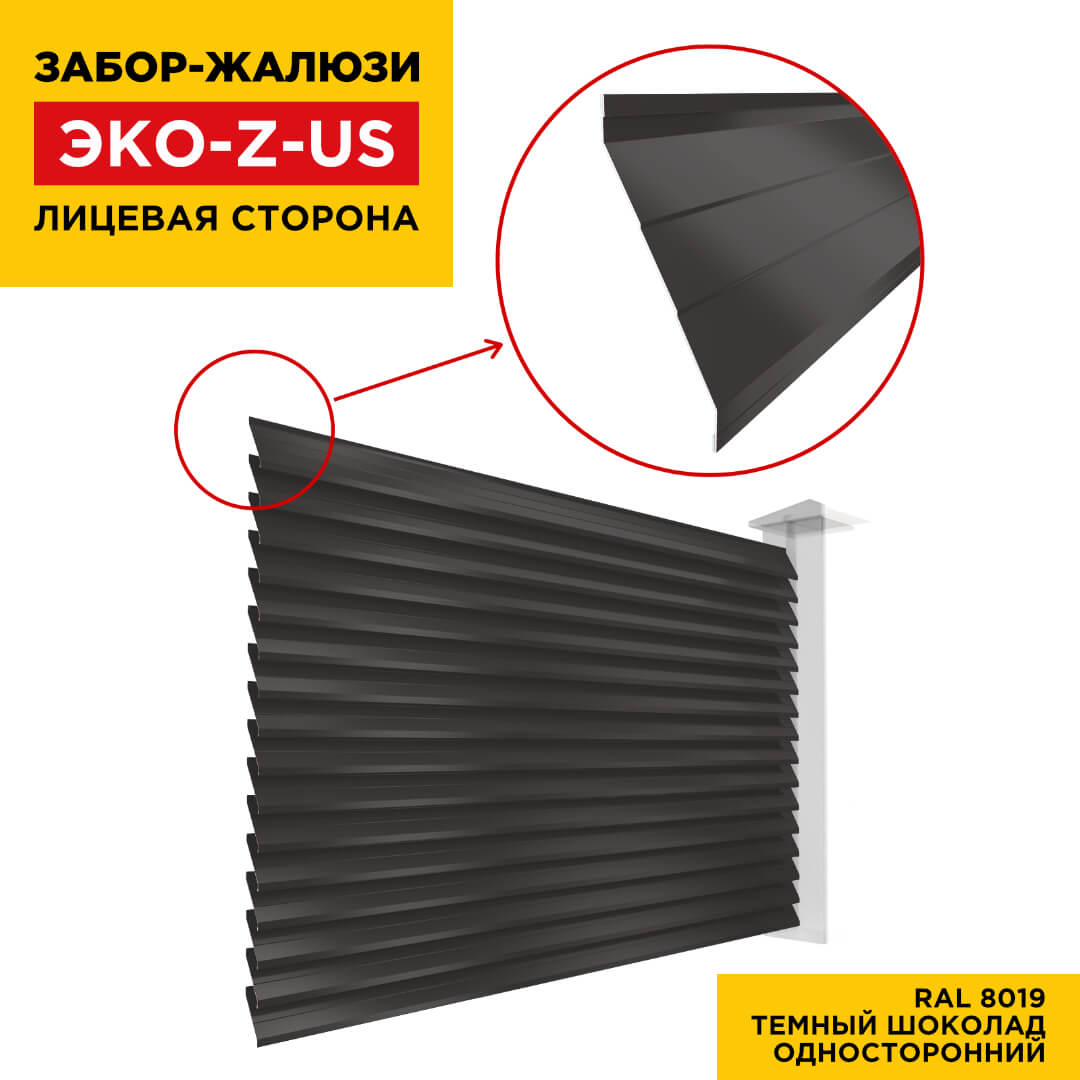 Ламель ЭКО-Z-US усиленная RAL8019 Темный Шоколад для забора-жалюзи