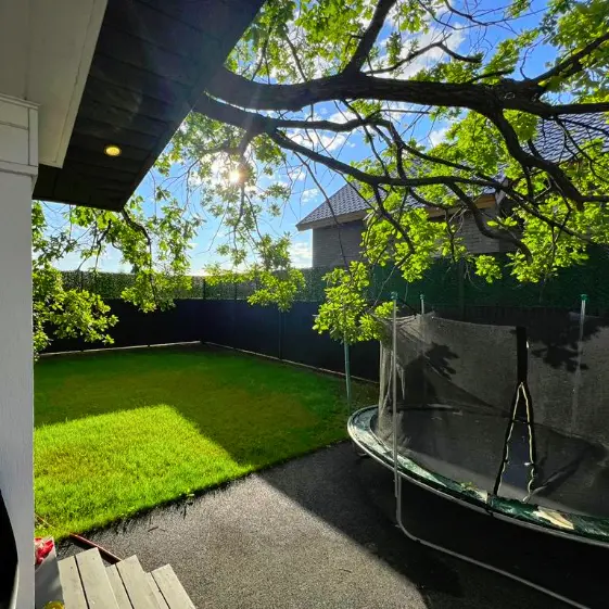 Установка сетчатого забора Grass Fence высотой 1 м, который использован для наращивания уже существующего ограждения из профнастила. Такое решение позволило увеличить общую высоту забора без необходимости полного демонтажа и установки новой конструкции. Дополнительный модуль гармонично сочетается с профнастилом, сохраняя внешний вид участка аккуратным и завершённым, а также обеспечивая более высокий уровень уединённости и безопасности.